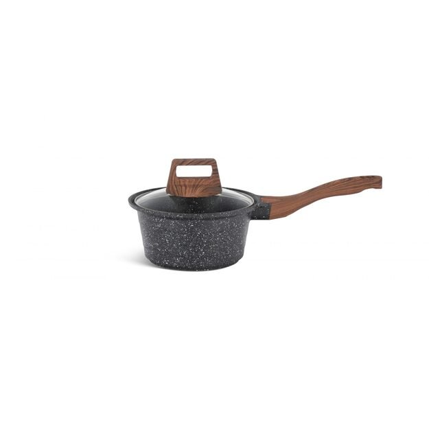 Kastruolė su dangčiu: 1,3 l talpos, 16 cm skersmens.