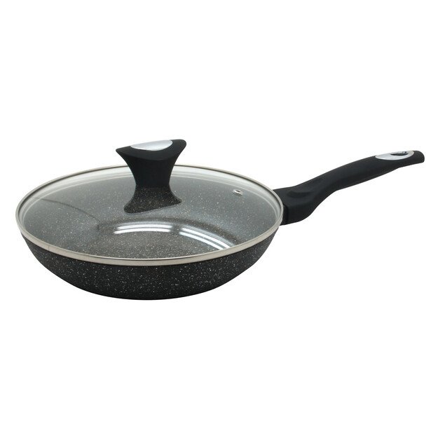 Klausberg aliumininė keptuvė su marmurine danga ir stikliniu dangčiu, Ø24 cm skersmens, pilkos spalvos. Tinka visų tipų viryklėms, įskaitant indukcines.